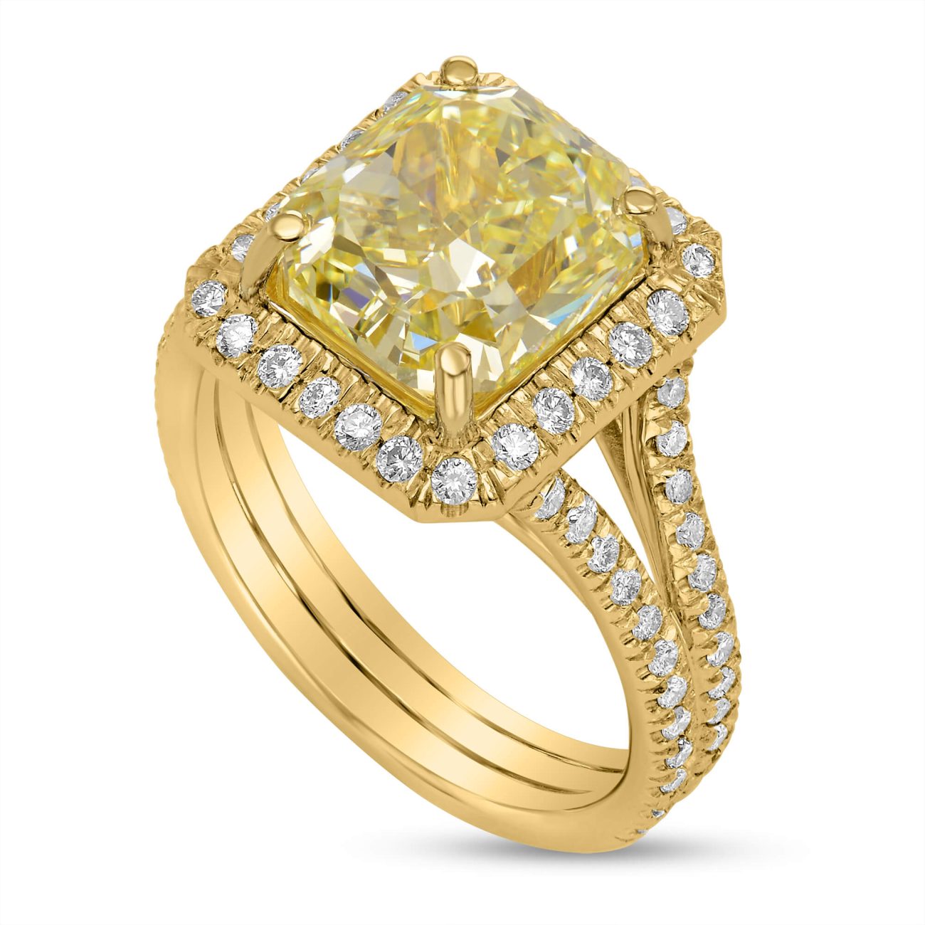 טבעת ייחודית משובצת ביהלום מרכזי פנסי ילוו (Fancy Yellow)