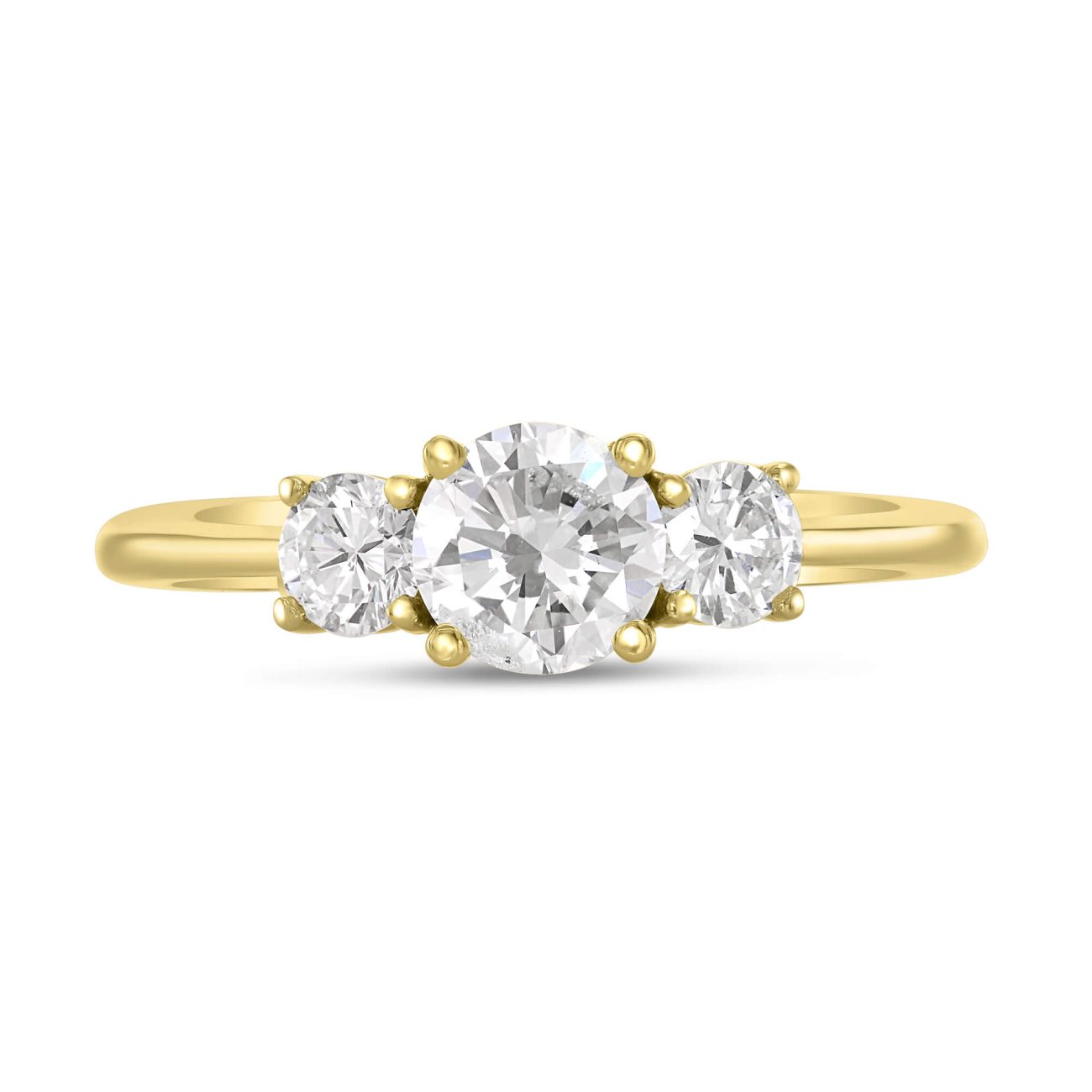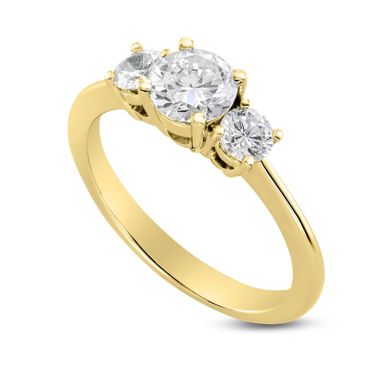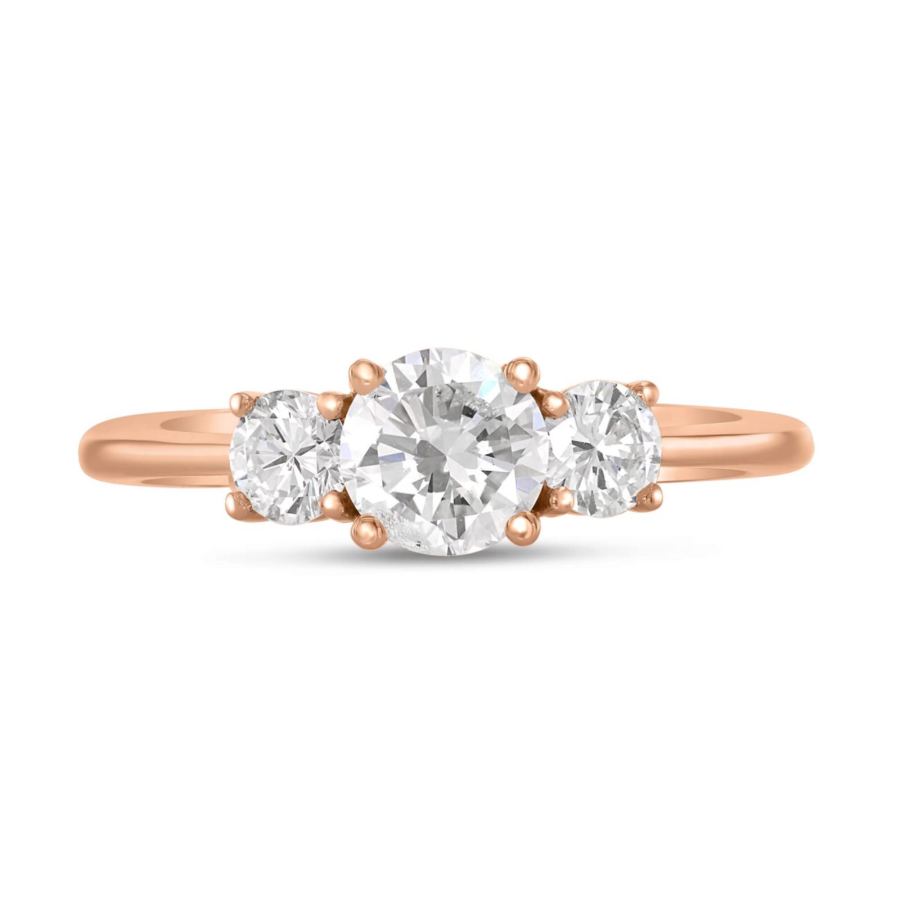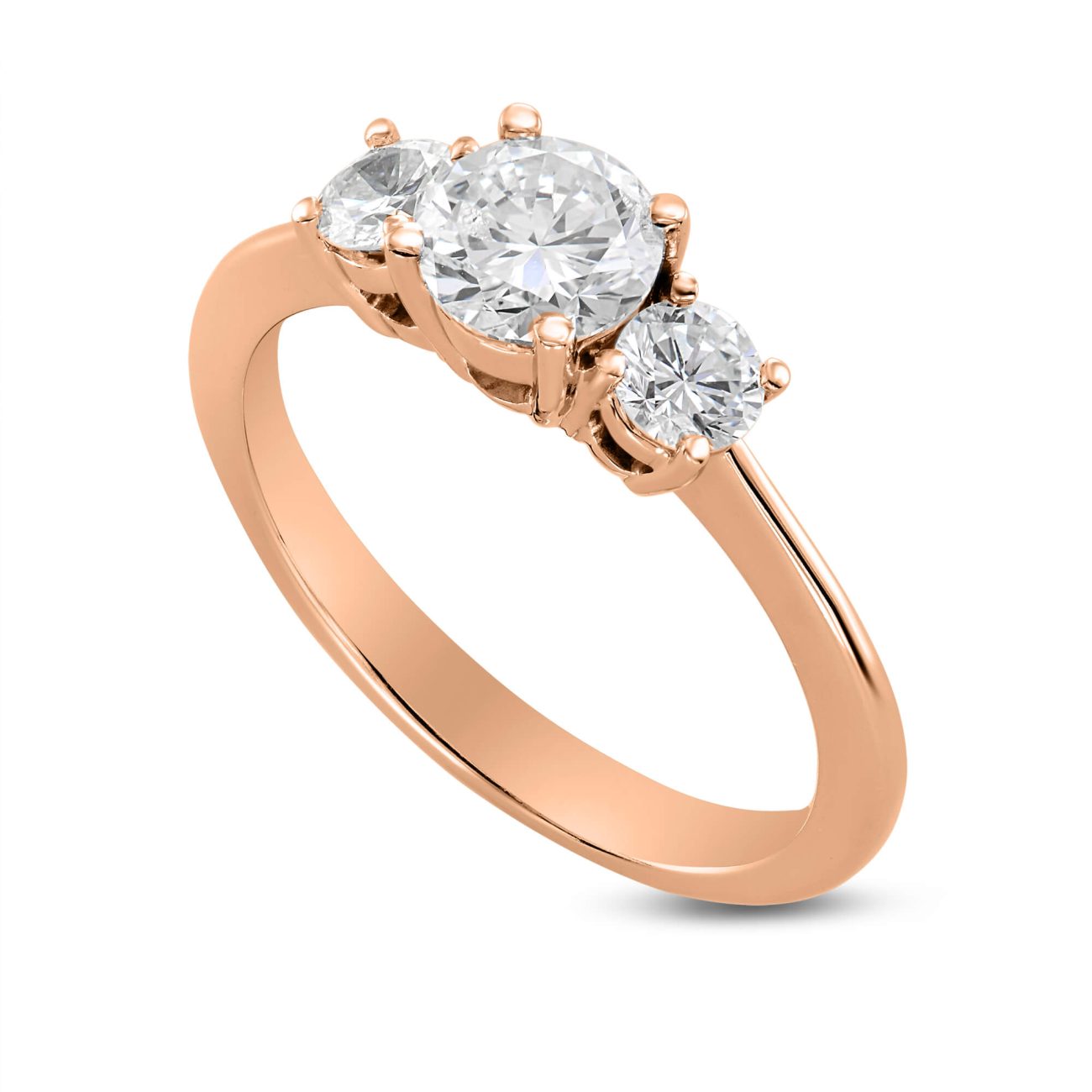 טבעת מעוצבת משובצת ב3 אבנים- יהלום מרכזי עגול גדול ו2 יהלומי צד עגולים קטנים יותר