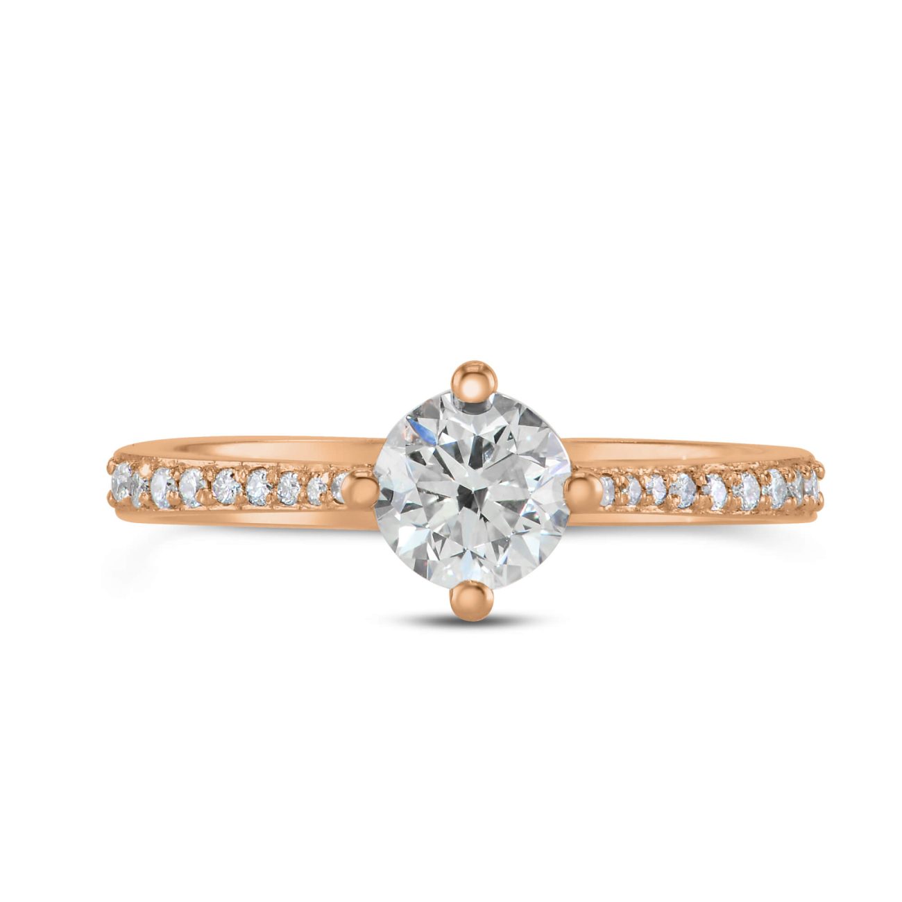 טבעת משובצת יהלום מרכזי עגול ויהלומי צד קטנים על הטבעת עצמה