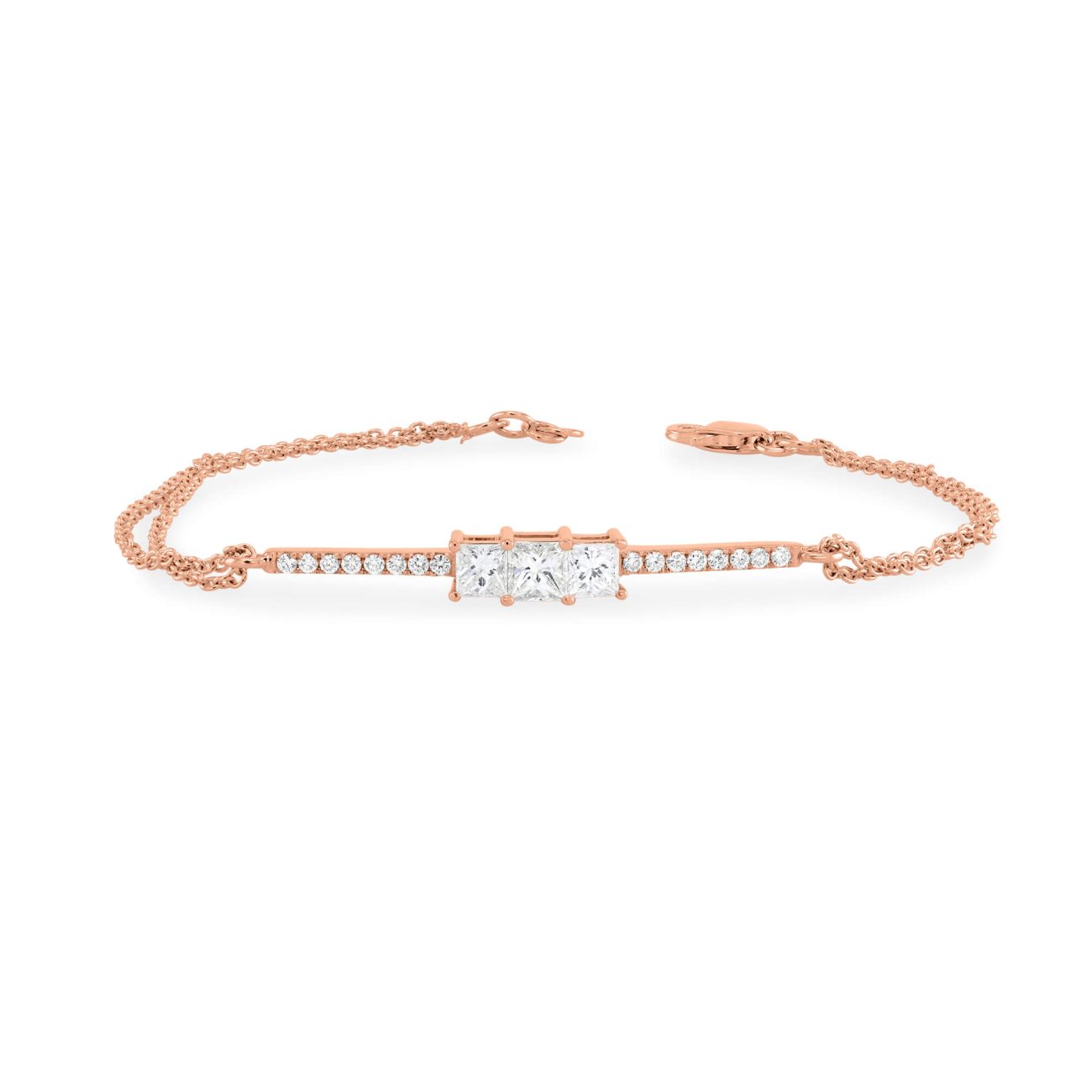 צמיד משובץ ב3 יהלומים בחיתוך פרינסס (ריבוע) ויהלומי צד