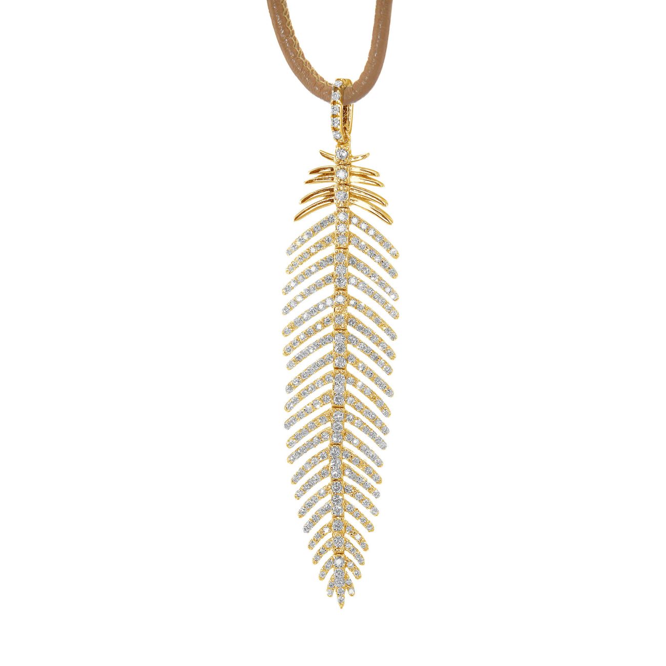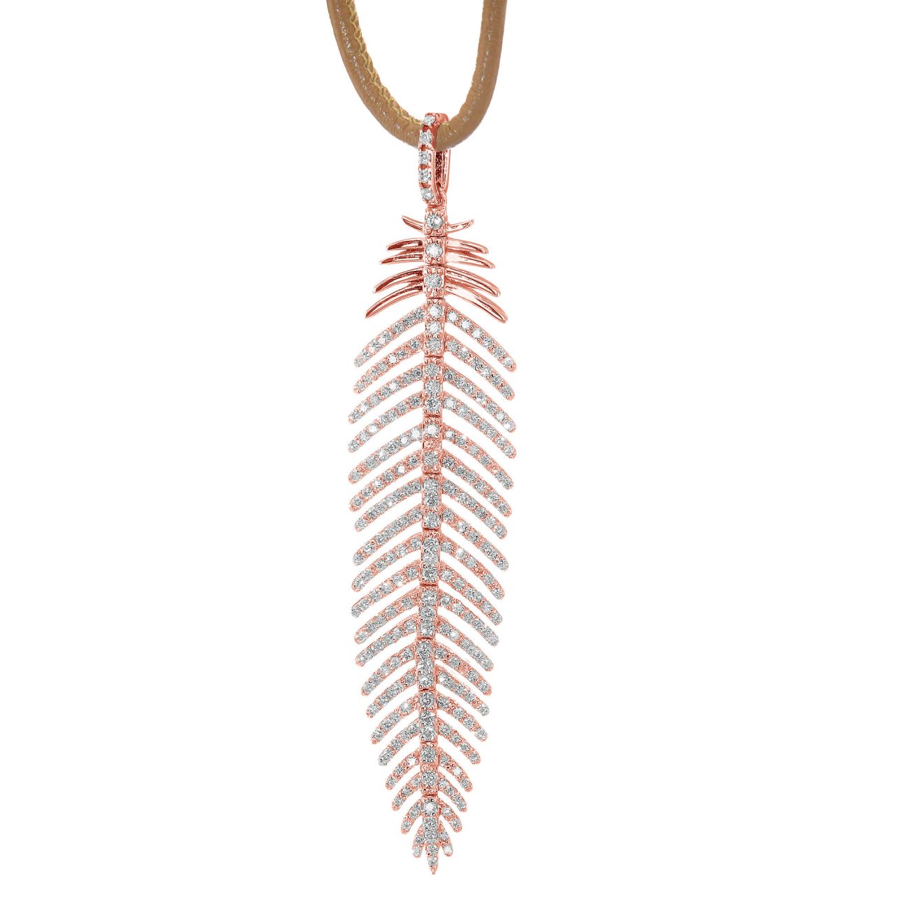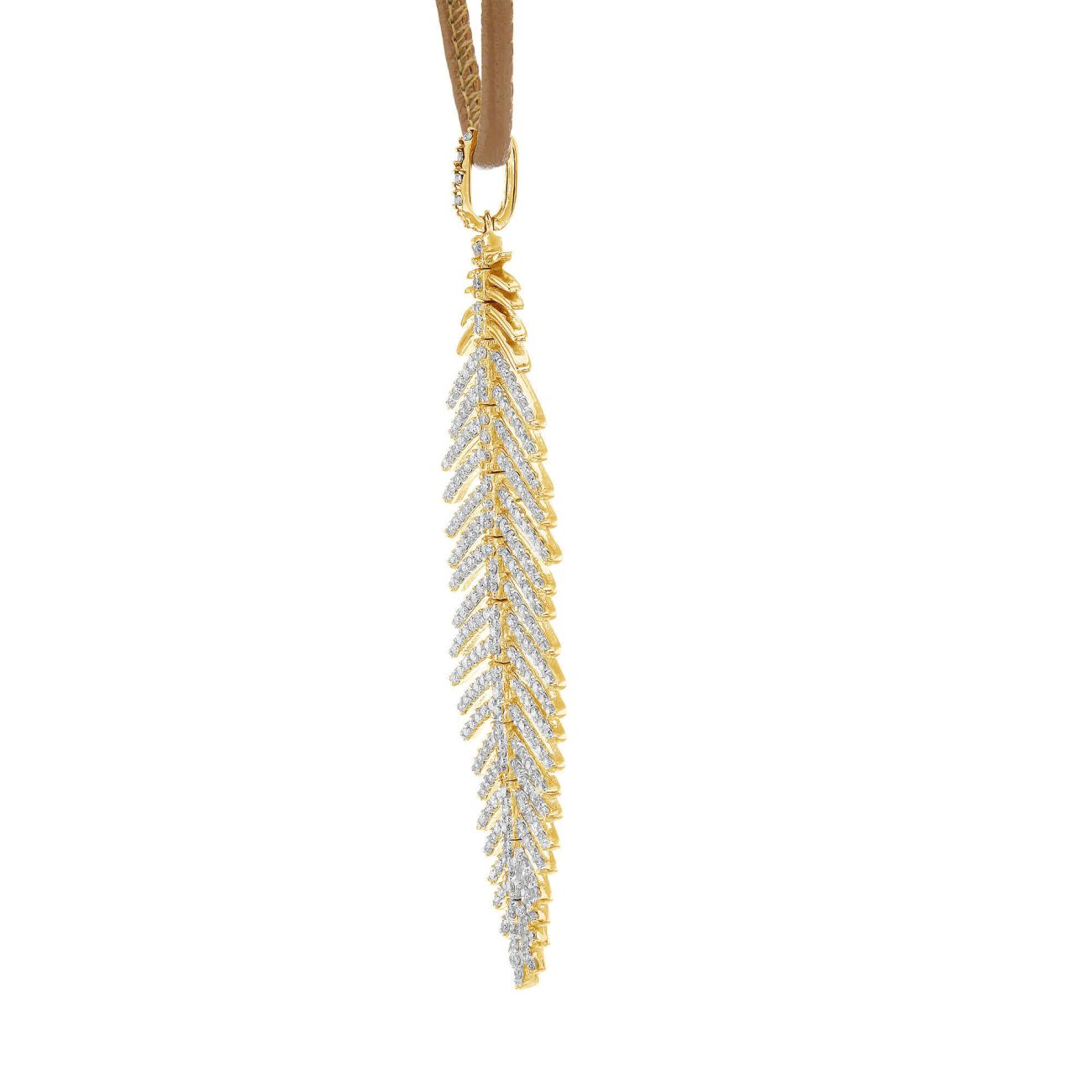 תליון בעיצוב מיוחד שלנו בצורת נוצה/עלה במשקל יהלומים כולל של 1.2 קראט