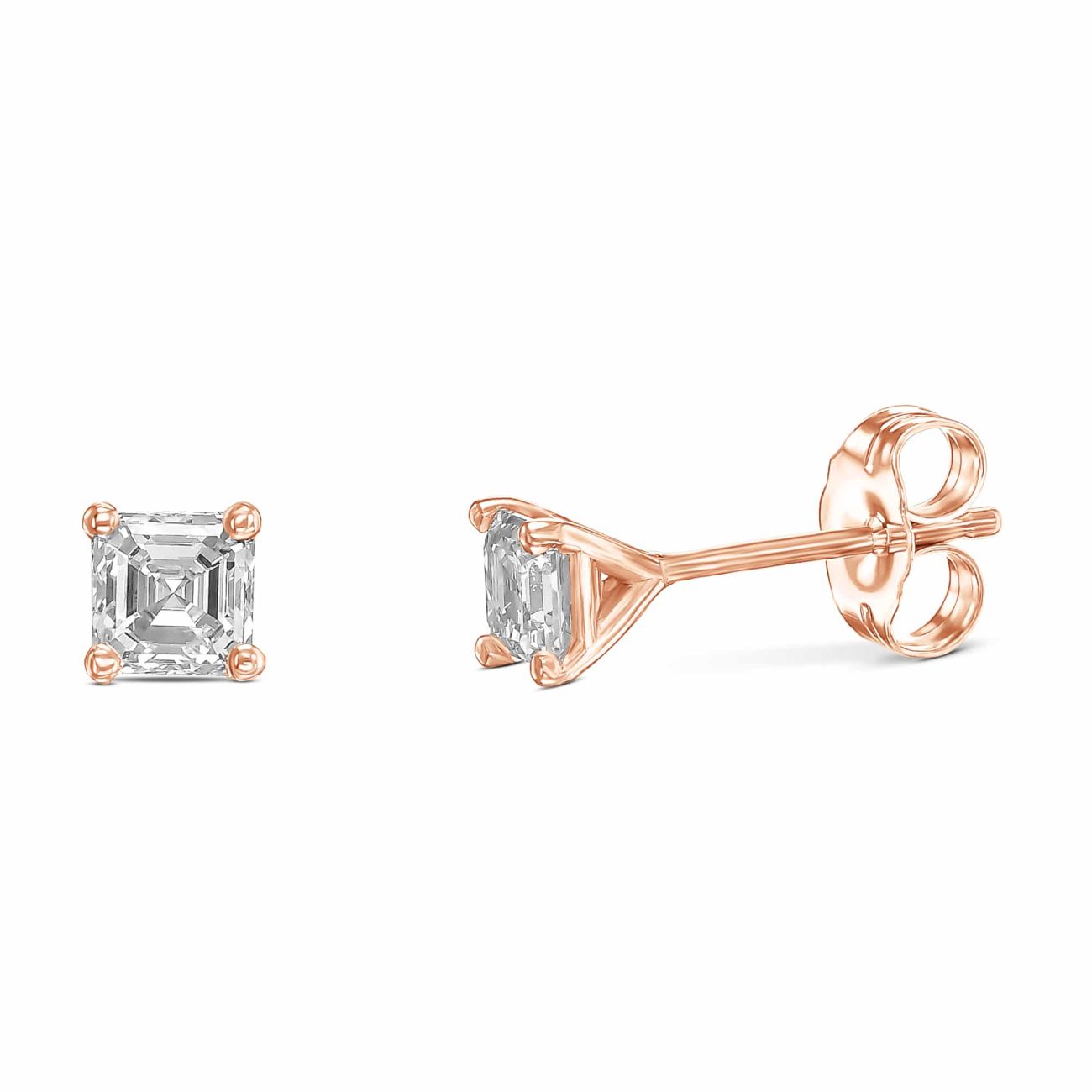 עגילי סוליטר מיהלומים מרובעים Ascher cut, העגילים מגיעים במספר רב של גדלים ובכל צבעי הזהב. ניתן לשנות גם את עיצוב השיניים וגם את סוג הסוגרים.